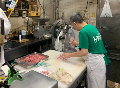 店内にある藁焼きコーナーで注文のたびに藁焼きにしてお客様に提供させて